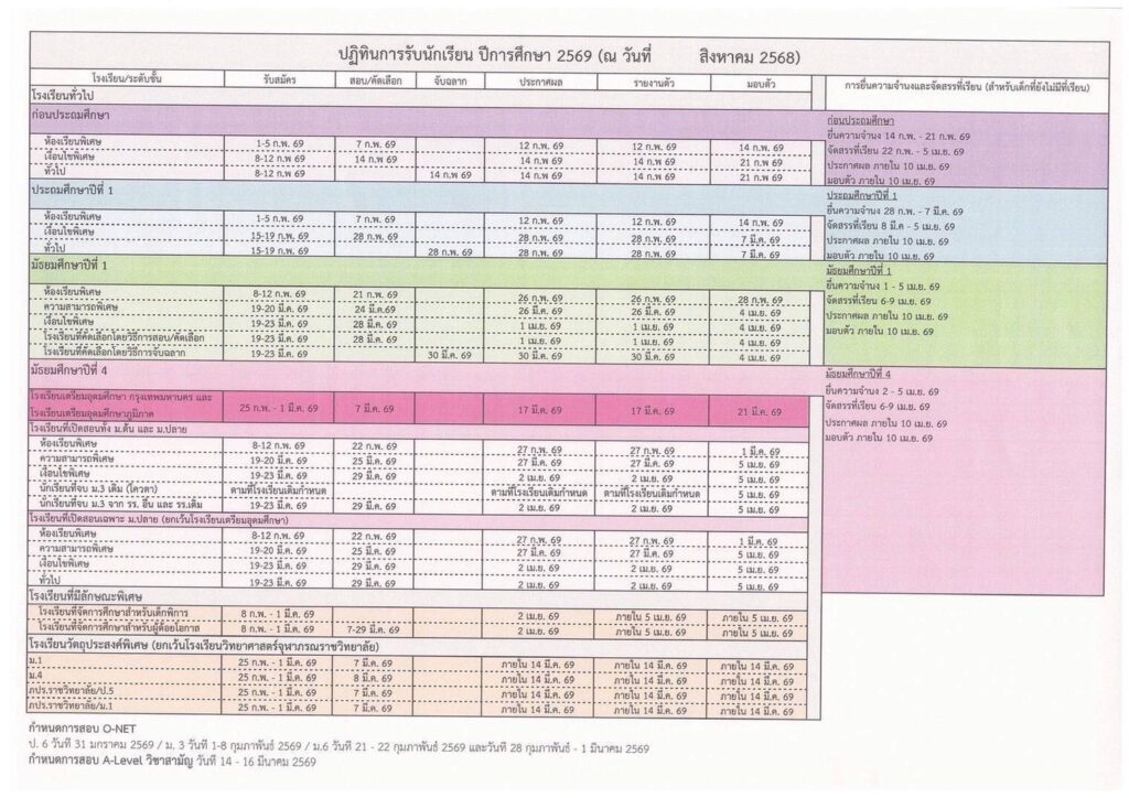 ปฏิทินการรับนักเรียน ปีการศึกษา 2569